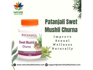 Patanjali Swet Mushli Churna boosts energy, physical stamina, energy level, and overall health strength. It is one of the best herbal supplements for women and men. In women, it regulates the menstrual cycle, and in men, it improves sperm count. These Ayurvedic supplements help to tackle debility, weakness, and loss of immunity while enhancing the body's natural defense system, and also help to reduce fatigue. You can purchase Patanjali Swet Mushli Churna from NatureHealthyHerbs, which supports overall health.