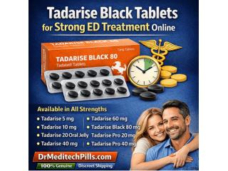 For stronger support, options like Tadarise 60 mg tablet, Tadarise Black 80 mg tablet, Tadarise Pro 20 mg tablet, and Tadarise Pro 40 mg tablet are available. Order genuine Tadarise tablets online from Dr Meditech Pills for reliable quality, affordable pricing, and discreet delivery.