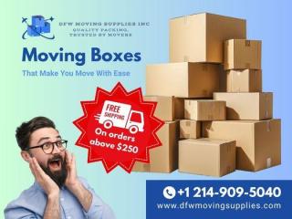 Find the best quality moving boxes at DFW Moving Supplies! We offer a wide variety of packing boxes, including small boxes, medium boxes, and large boxes, perfect for every move. Whether you're packing up a few items or an entire home, our durable and reliable moving boxes will help make your move easier. Enjoy FREE shipping on orders over $250. Visit us today at dfwmovingsupplies.com or call +1 214-909-5040 for more details!
